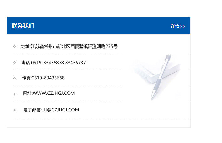 傳真:0519-83435688    郵編:213135    網址:WWW.czjhgj_com.tongyuankeji.com    電子郵箱:JH@czjhgj_com.tongyuankeji.com